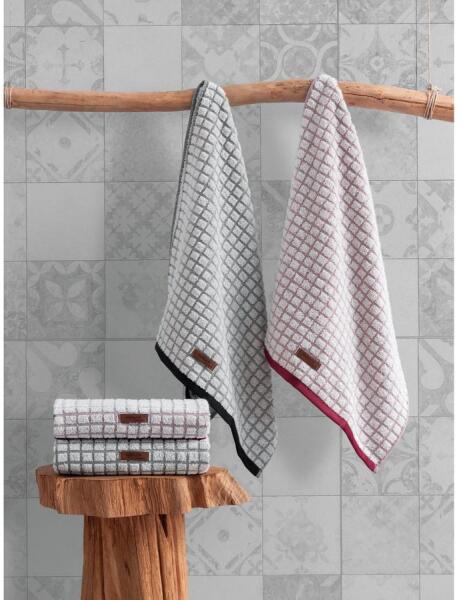 Kényeztesse magát a luxussal és kényelemmel a kiváló minőségű Kéztörlő Szettünkkel! A 75% pamut és 25% poliészter keverékéből készült törölközők nemcsak puhák és gyengédek a bőréhez, hanem rendkívül nedvszívóak is. Tapasztalja meg a végső kényeztetést a Kéztörlő Szettünkkel Bújjon bele ezekbe a puha törölközőkbe egy pihentető fürdő vagy zuhanyzás után, és érezze, ahogy a napi stressz elolvad. A szett négy bőséges méretű törölközőt tartalmaz, mindegyik 50 x 90 cm-es, így elegendő takarást és kényelmet biztosít. Adjon egy csipet eleganciát a fürdőszobájához A fekete-fehér és szürke-rózsaszín elegáns színkombinációjában elérhető törölközők könnyedén feldobják fürdőszobája megjelenését. Az időtlen dizájn és a kifinomult színek tökéletes kiegészítői bármilyen dekorációs stílusnak. Műszaki részletek: