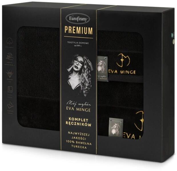 Eurofirany Gaja Eva Minge 3Db-os pamut törölköző szett Fekete