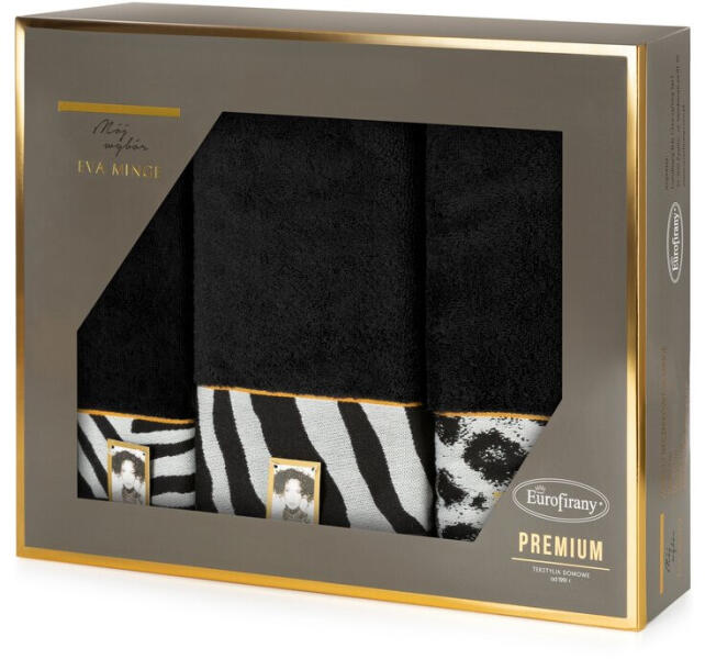 Eva22 3Db-os pamut törölköző szett FeketeSzín: fekete Grammsúly: 500 g/m2 Anyag: 100% pamut / 100% poliészter Cikkszám: HS462066