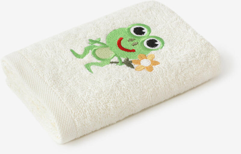Goldea gyermek frottír törölköző - béka a tejszínen 30 x 50 cm