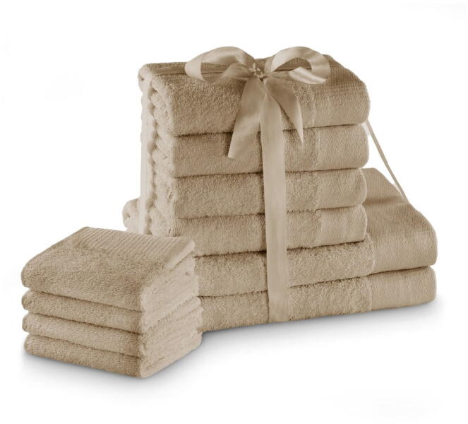 Restilo Bézs frottír pamut törölköző és fürdőlepedő készlet 10 db-os Amari - Restilo