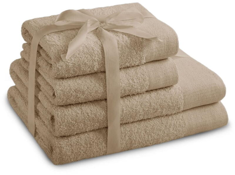 Bézs frottír pamut törölköző és fürdőlepedő készlet 4 db-os Amari – Restilo