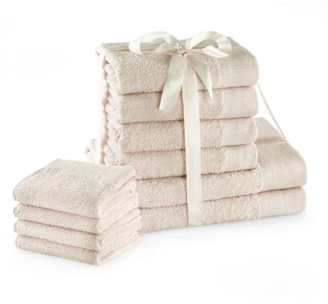 Restilo Krémszínű frottír pamut törölköző és fürdőlepedő készlet 10 db-os Amari - Restilo