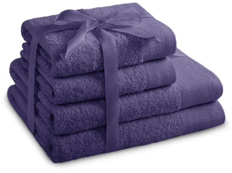 Lila frottír pamut törölköző és fürdőlepedő készlet 4 db-os Amari – Restilo