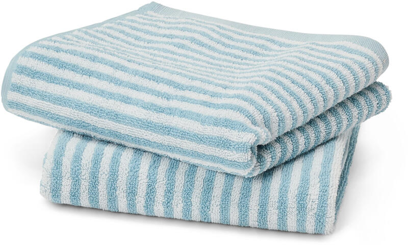 2 törölköző, csíkos, világoskék, 50 x 90 cm Szín: 2x kék Anyag: 100% pamut Méretek: Egyenként kb. 50 x 90 cm Különösen puha és nedvszívóKiváló minőségű pamut – mosásálló és strapabíróA szegély nem megy össze mosáskorAkasztó a rövidebbik oldalon