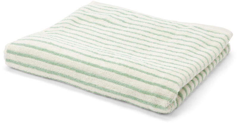Fürdőlepedő, csíkos, világoszöld/fehér, 70x130 cm Szín: Zöld-fehér csíkos Anyag: 100% pamut (ökológiai gazdálkodásból származó) Méretek: Kb. 70 x 130 cm Különösen puha és nedvszívóKiváló minőségű pamut – mosásálló és strapabíróA szegély nem megy össze mosáskorAkasztó a rövidebbik oldalonGOTS organic, CU 809415 tanúsítottEz a fürdőlepedő kíméli a vízkészleteket.